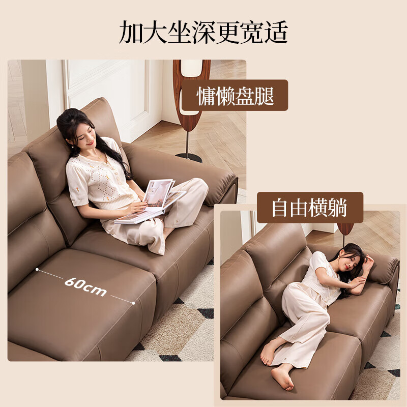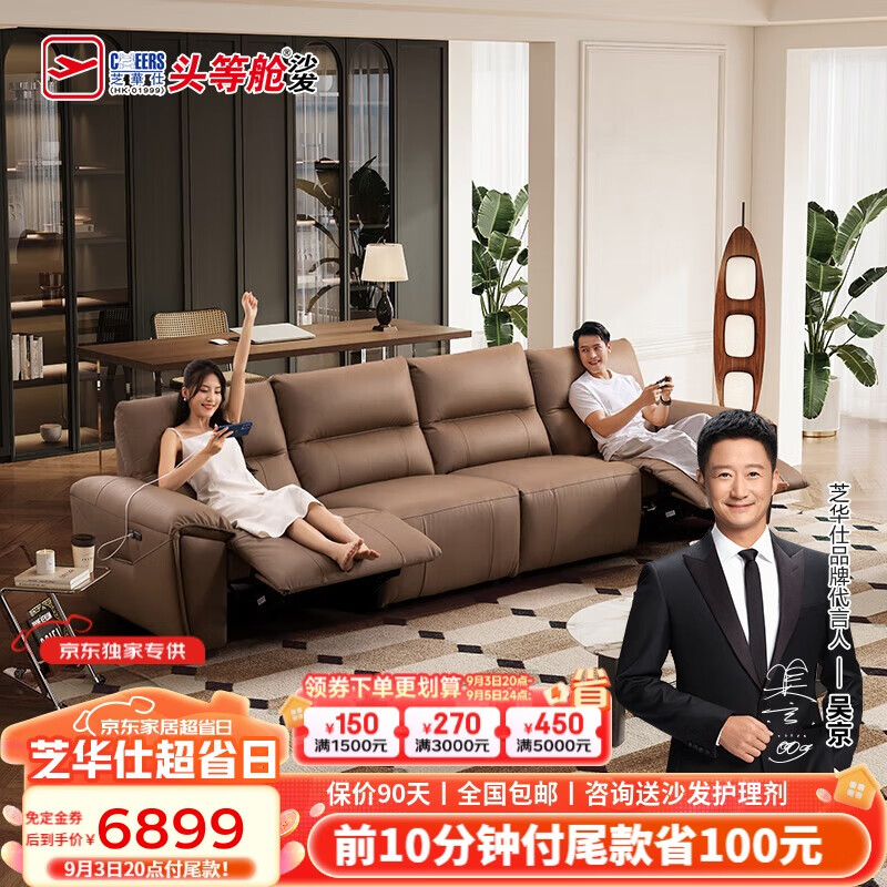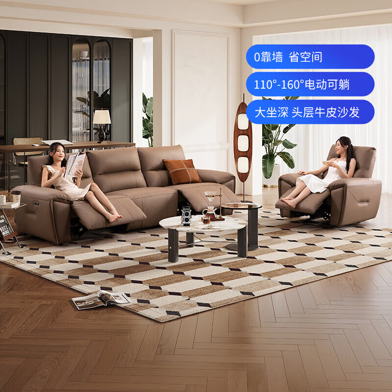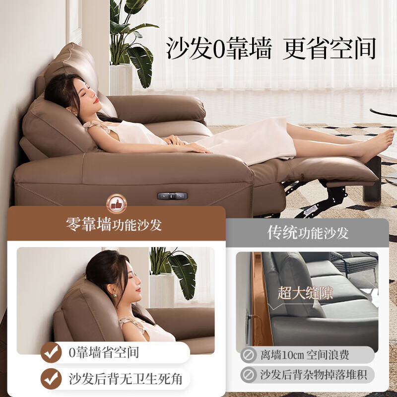 芝华仕(CHEERS)头等舱零靠墙真皮沙发美拉德复古功能直排客厅芝华士30269棕四价格:7449.00元!