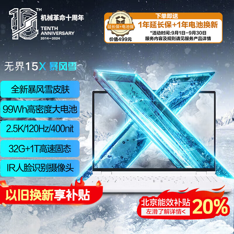机械革命无界15X暴风雪( R7-8845HS 32G 1T 99Wh 120Hz 2.5K 高色域)轻薄本办公商务本游戏本笔记本电脑价格:4999.00元!