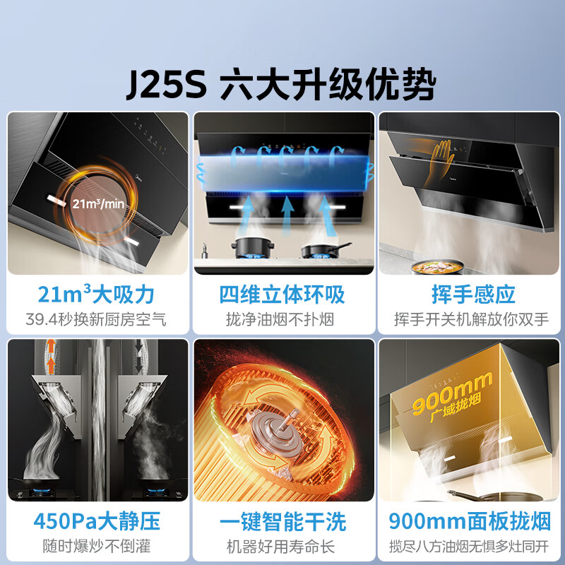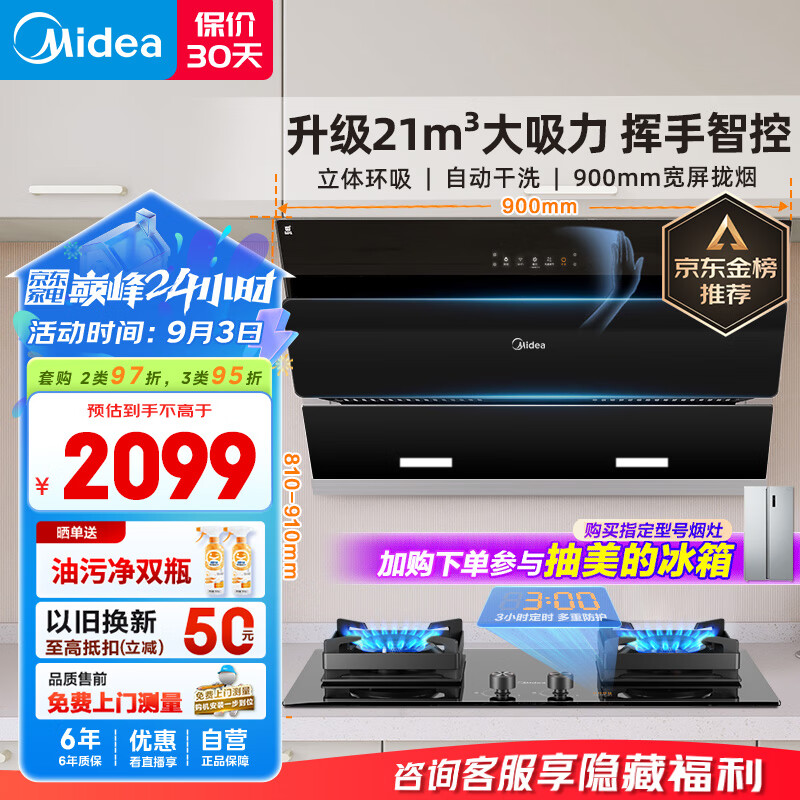 美的抽油烟机燃气灶套装小户型厨房烟灶套装 21大吸力自动清洗油烟机灶具套装J25S+Q318P定时灶价格:2099.00元!