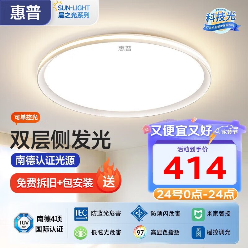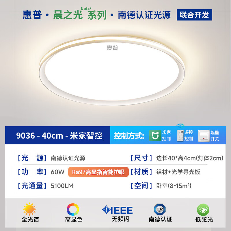 惠普卧室灯护眼灯具简约现代房间灯全光谱书房主卧儿童房灯智能吸顶灯价格:690.00元!