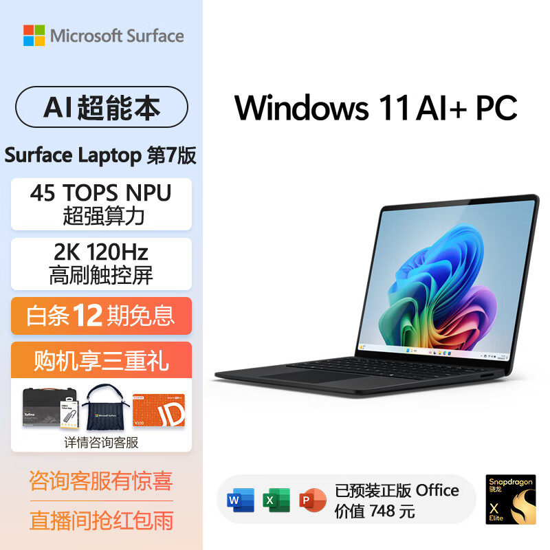 微软(Microsoft)全新Surface Laptop第7版 骁龙X Elite 32G 1T典雅黑 轻薄触控笔记本电脑AIPC surface Laptop 7价格:15388.00元!