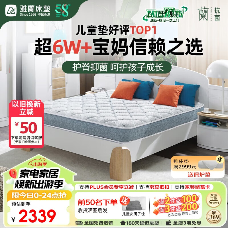 雅兰抑菌面料进口乳胶黄麻床垫 独袋弹簧er童床垫 蘭精灵 1.8*2米价格:2339.00元!