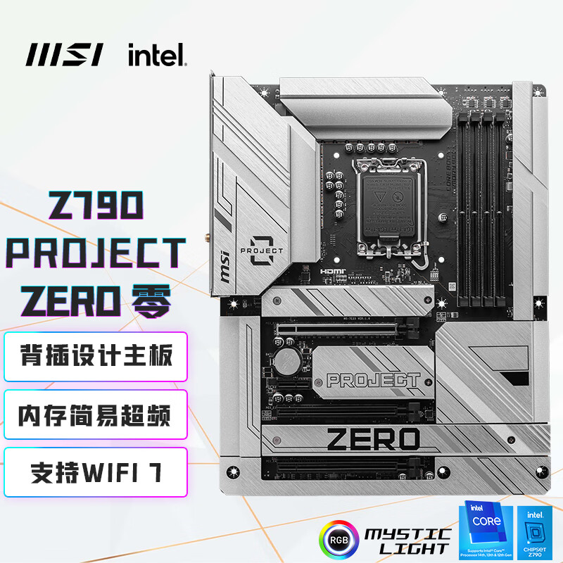 微星(MSI)Z790 PROJECT ZERO 零 DDR5 WIFI7背插主板 支持CPU14900KF/14700KF/14900K(Intel Z790/LGA 1700)价格:2199.00元!