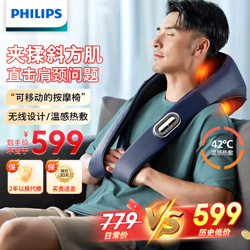 飞利浦(PHILIPS)5201N 颈椎按摩器 斜方肌按摩披肩颈按摩器颈部按摩仪 腰部揉捏热敷 生日礼物礼品送长辈父母价格:699.00元!