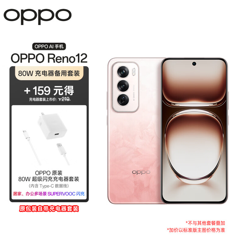 OPPO Reno12 16GB+256GB柔和桃 超美小直屏 天玑8250星速版旗舰芯拍照手机 【80W原装充电器备用套装】价格:3158.00元!