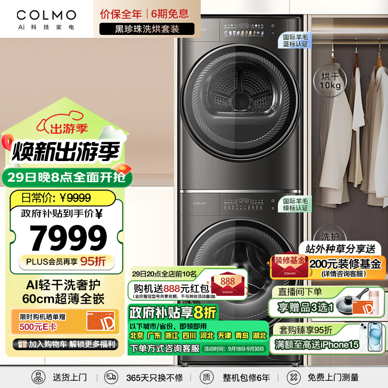 COLMO黑珍珠洗烘套装SE 10KG洗烘套装全自动洗衣机热泵烘干机 以旧换新洗超薄全嵌CLGN10HEL+CLHZ10HDL价格:10997.00元!