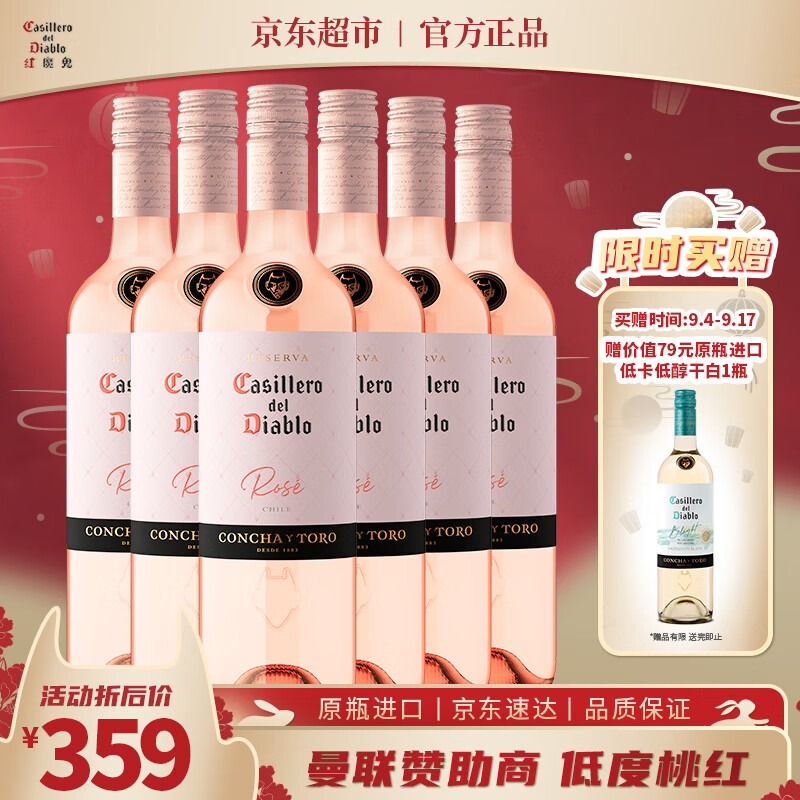 红魔鬼(Casillero del Diablo)桃红葡萄酒750ml*6瓶整箱 智利进口红酒 团建聚会低度红酒价格:359.00元!