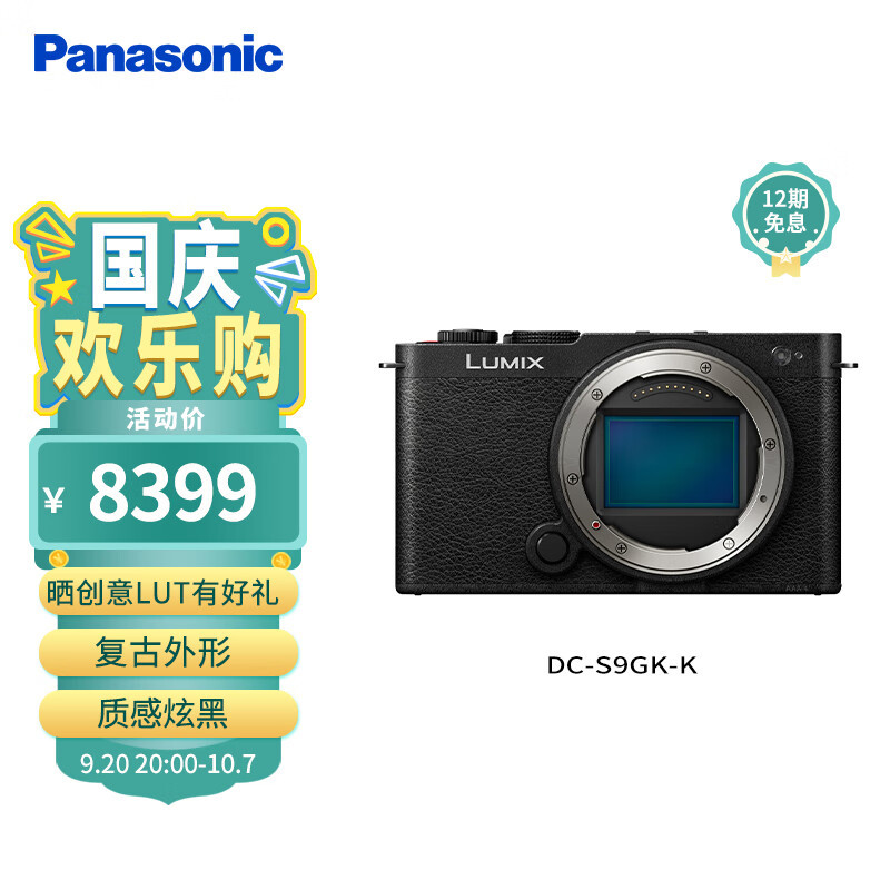 松下S9单机身(Panasonic)全画幅微单相机 实时Lut 滤镜直出 连接app极速分享 质感炫黑价格:8399.00元!