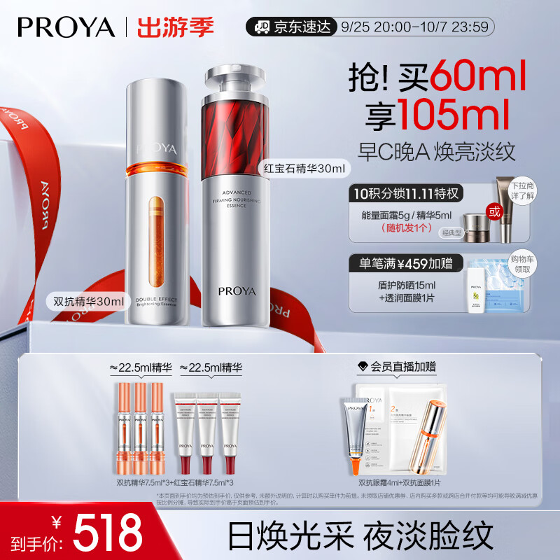 珀莱雅早c晚a精华护肤品套装3.0双抗红宝石抗皱补水精华液60ml生日礼物价格:548.00元!