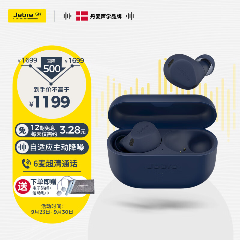 捷波朗(Jabra)Elite8 主动降噪真无线耳机 E8A半开放蓝牙耳机运动通话 IP68防水 蓝牙5.3 新一代Active 海军蓝价格:1299.00元!