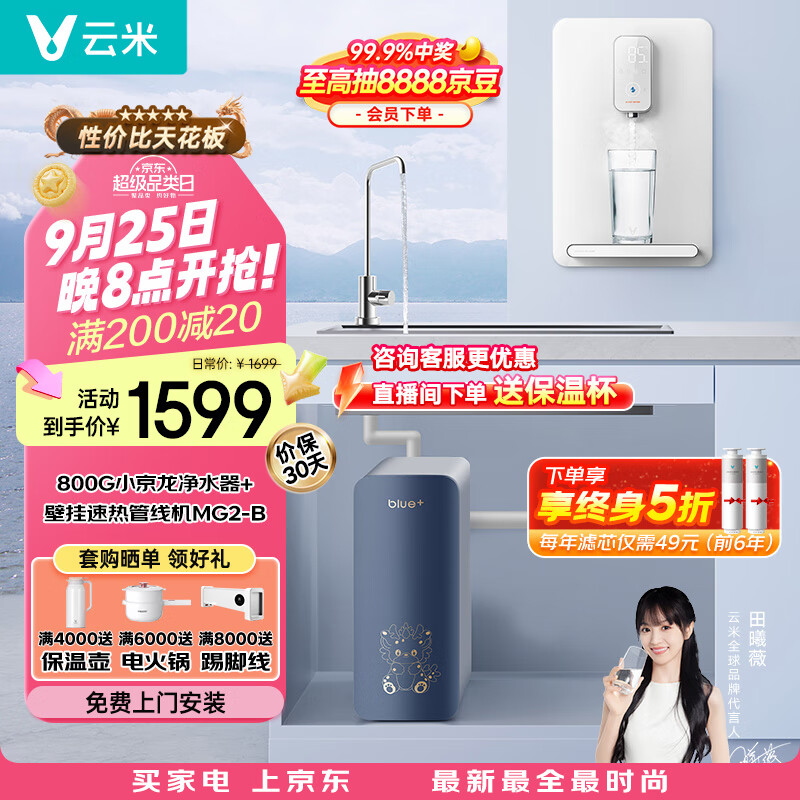 云米(VIOMI)小京龙800G全屋净水套装净水器+管线机MG2-B两件套家用直饮加热即热净水器净水机价格:1599.00元!
