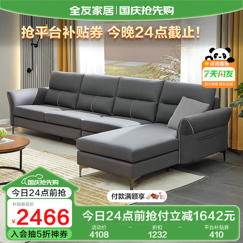 全友家居 现代简约功能科技布艺可拆洗储物转角贵妃沙发客厅102679价格:4108.57元!