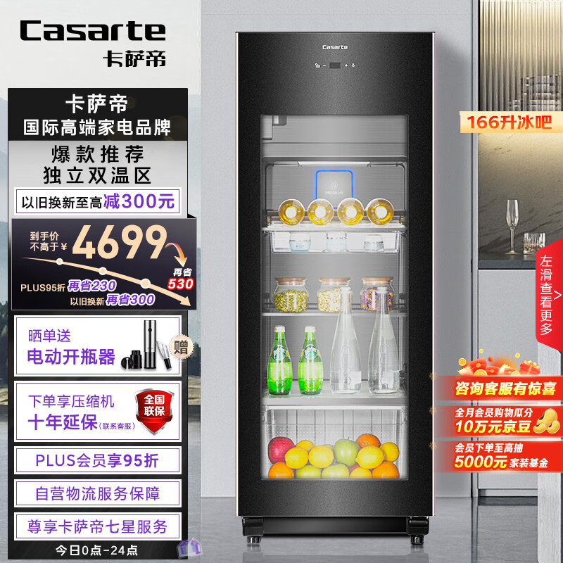 卡萨帝(Casarte)166升可制冰双温家用办公室冷藏柜暖藏冰吧 茶叶饮料水果保鲜柜小型冰箱DS0166DK 以旧换新价格:4699.00元!