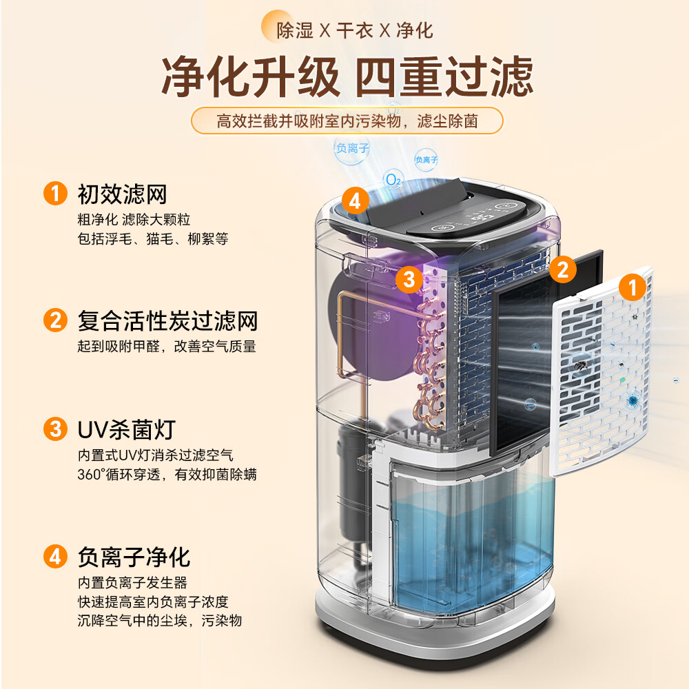 3、科技改变生活。东西很有质感,功能很全,可除湿,可净化,可加热。尤其是除湿效果巨好,十分钟之内,就可以从85降到65,估计开2档可一个小时抽水1?K以上,再也不怕湿气重了。东西不贵,比某力和某井性价比高。真心推荐。