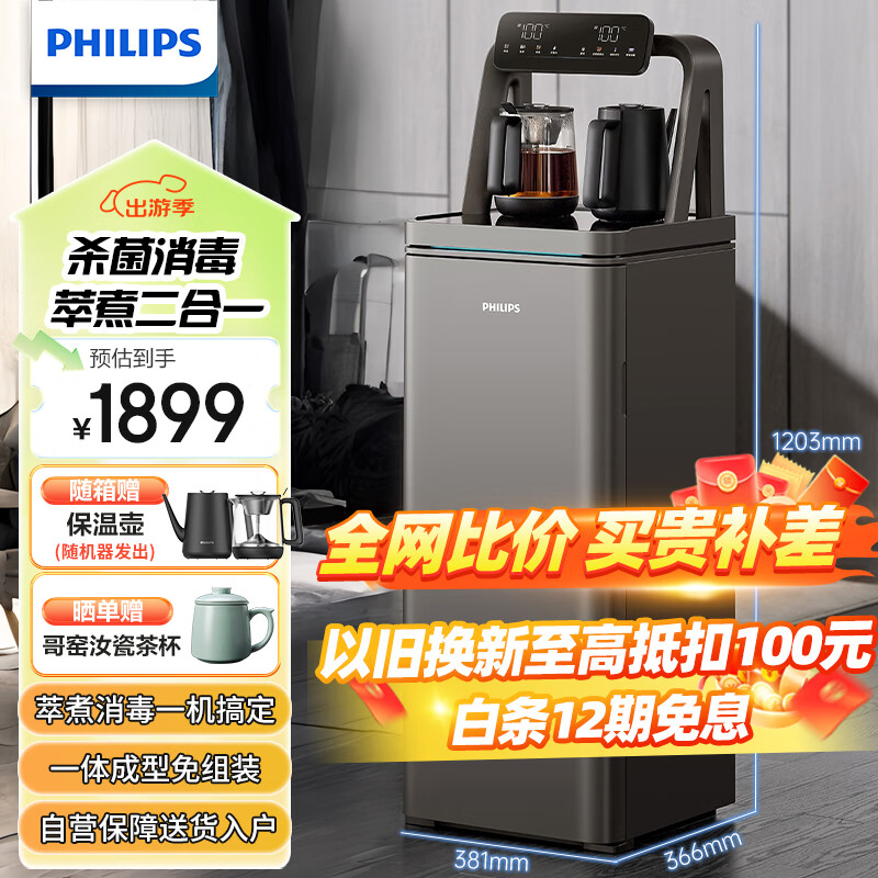 飞利浦(PHILIPS)茶吧机 家用饮水机 温热立式饮水机 大屏多功能遥控自动上水 智能变频烧水ADD8030价格:1899.00元!