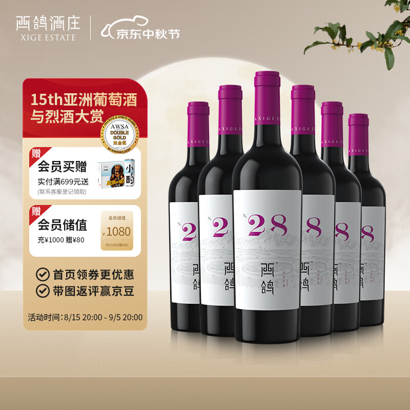 西鸽酒庄N28马尔贝克干红葡萄酒750ml*6整箱装 宁夏贺兰山国产红酒宴请价格:1608.00元!