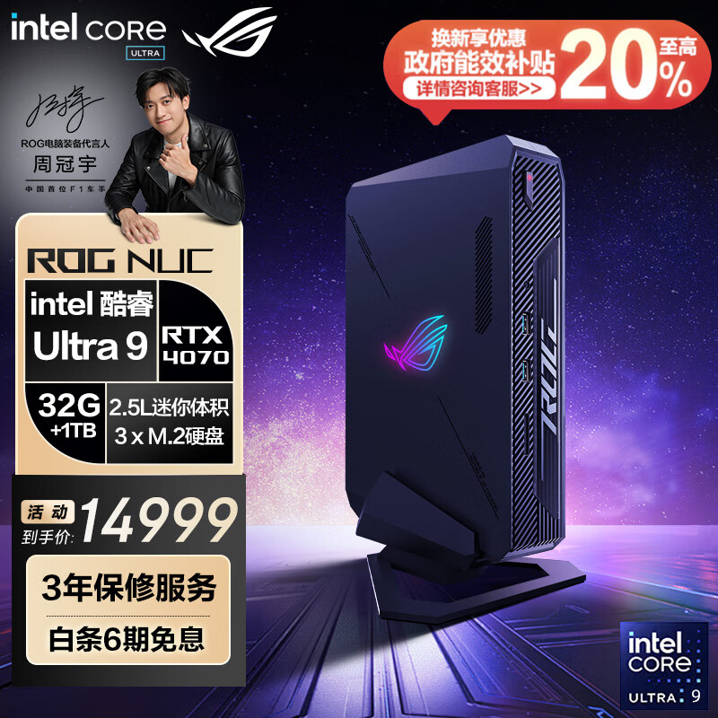 ROG NUC 2024酷睿Ultra 9迷你独显黑神话游戏AI电脑mini主机 (U9-185H 32G DDR5 1TB SSD RTX4070 )价格:14999.00元!
