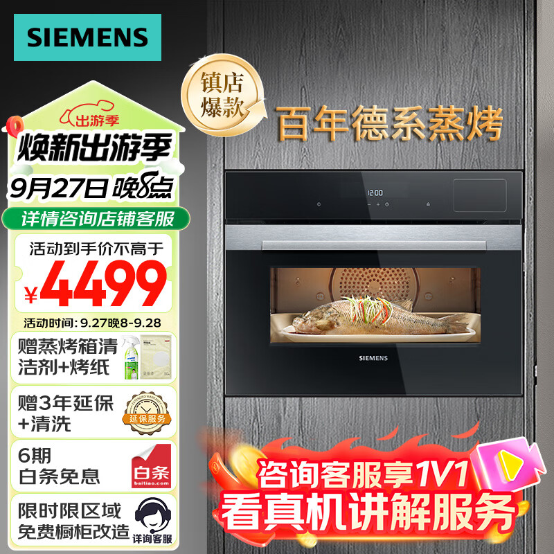 西门子(SIEMENS)嵌入式蒸烤箱一体机烤箱蒸箱 智能家用蒸烤一体机 45L 大容量CS389ABS0W高45.5CM价格:4498.00元!