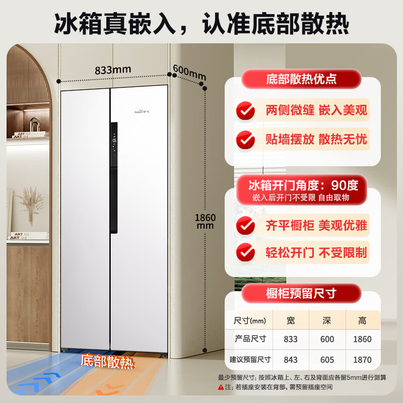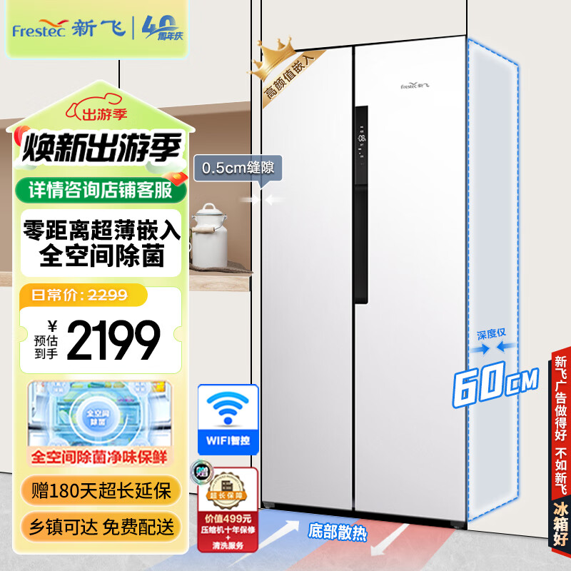 新飞(Frestec)60cm超薄嵌入450L对开门一级变频底部散热全空间除菌电冰箱以旧换新BCD-450WKQ9AT白价格:2199.00元!