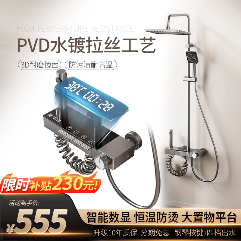 迪黎 智能数显淋浴花洒套装钢琴独立按键增压花酒喷头淋浴器花洒全套价格:785.00元!