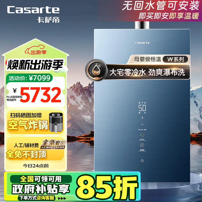 卡萨帝(Casarte)20升零冷水燃气热水器天然气【鉴赏家CWS】母婴级恒温 静音水伺服增压JSQ38-20CWS(12T)U1以旧换新价格:7099.00元!