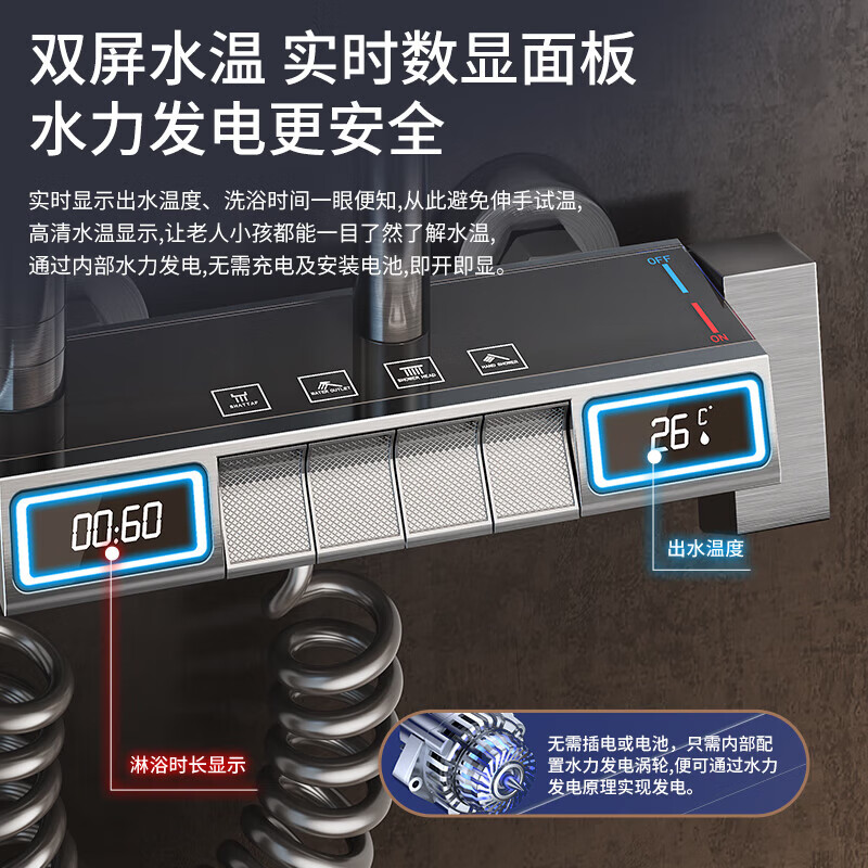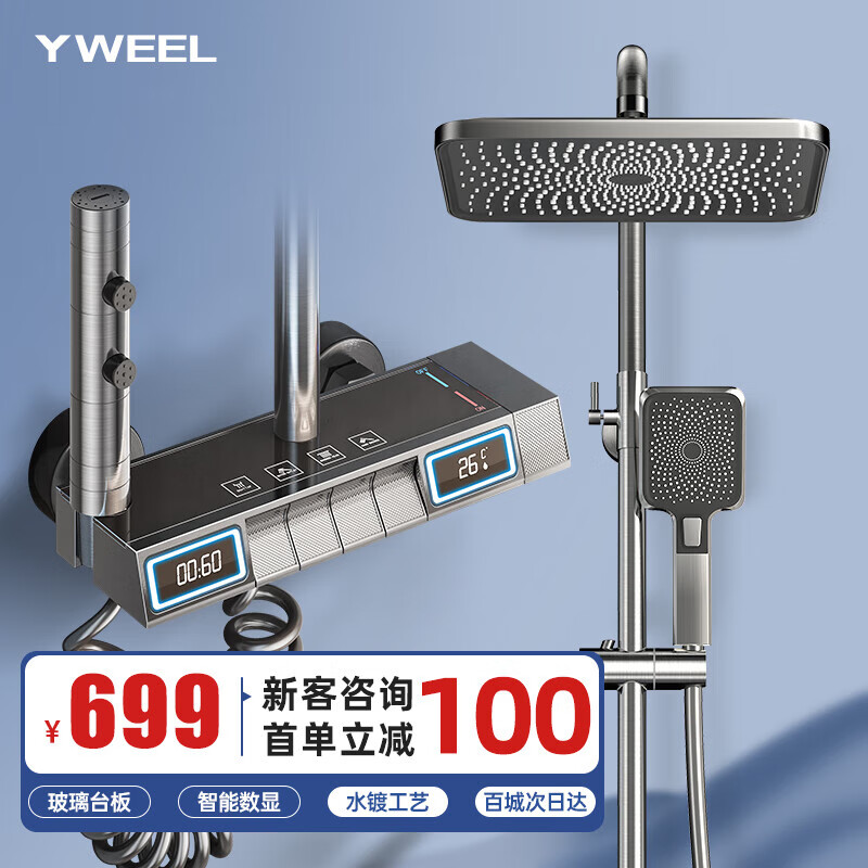 一卫灰色恒温淋浴花洒套装枪灰色智能数显增压花洒全套价格:799.00元!