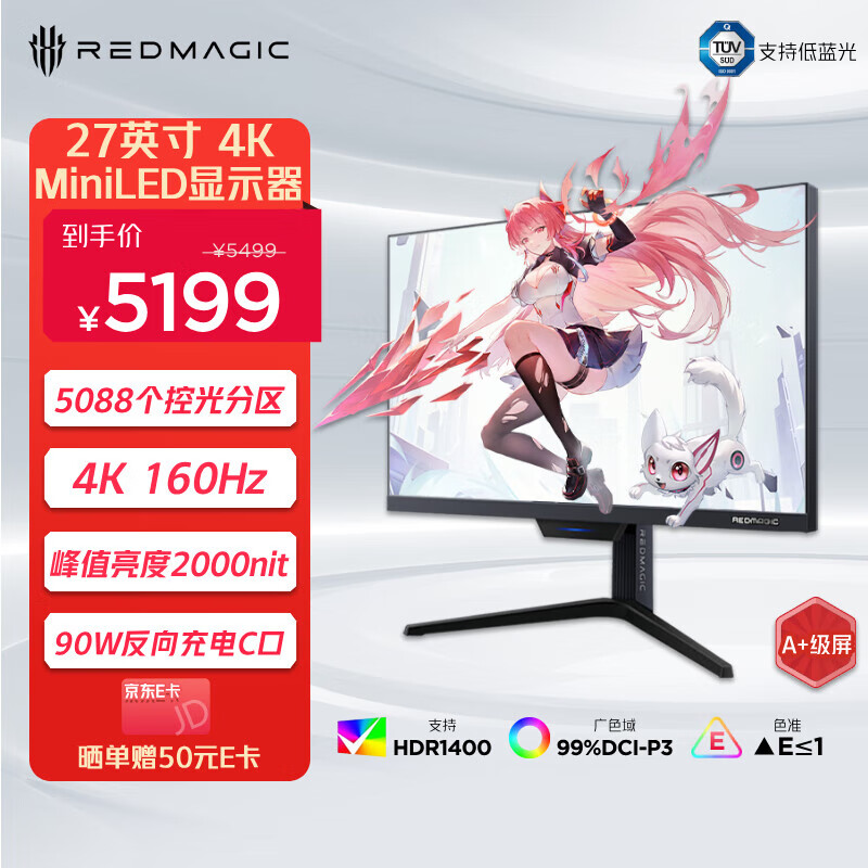 努比亚(nubia)红魔电竞显示器GM001S 27英寸 4K 160Hz MiniLED 5088分区 支持HDR1400 90W Type-C接口 高清液晶价格:5499.00元!