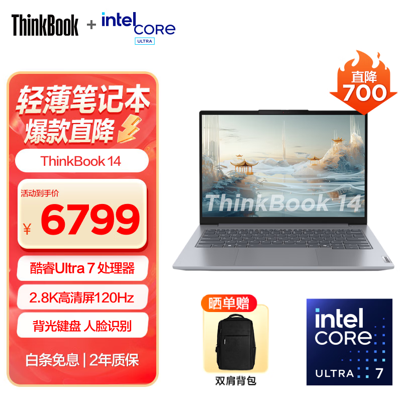 ThinkPad 联想ThinkBook 14/16 2024全新英特尔酷睿Ultra处理器 学生办公轻薄笔记本电脑 120Hz刷新率 14英寸 Ultra7 32G 1TB 91CD价格:6799.00元!