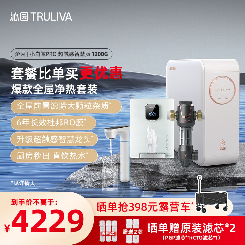 沁园(TRULIVA)触控屏 小白鲸PRO三件套1200G 净水器UR-S51298+前置过滤器P-A5510+加热管线机LNW580-5W价格:4229.00元!