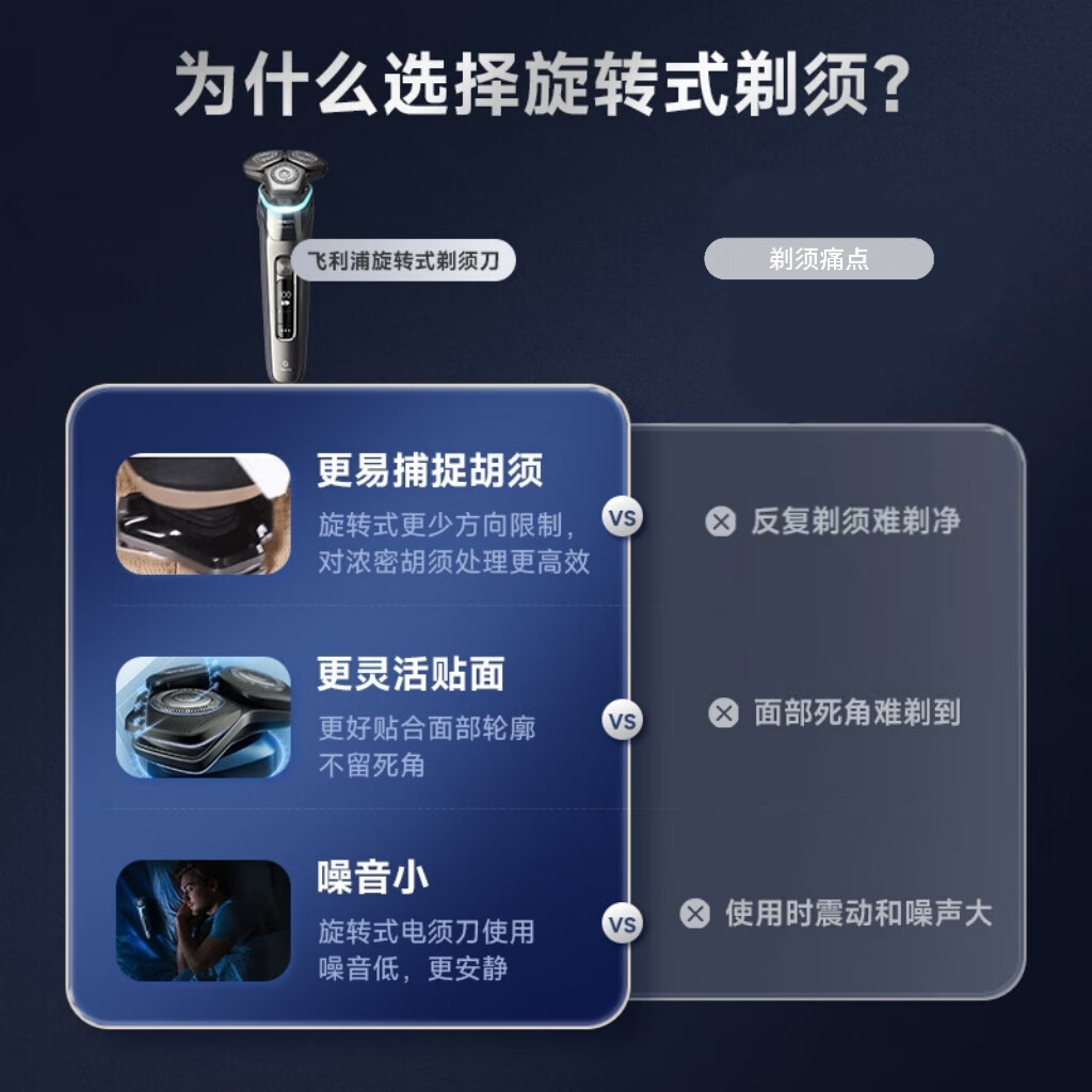 5、试用下好用,声音很轻,剃须干净,和描述一致,相信飞利浦剃须刀的品质。