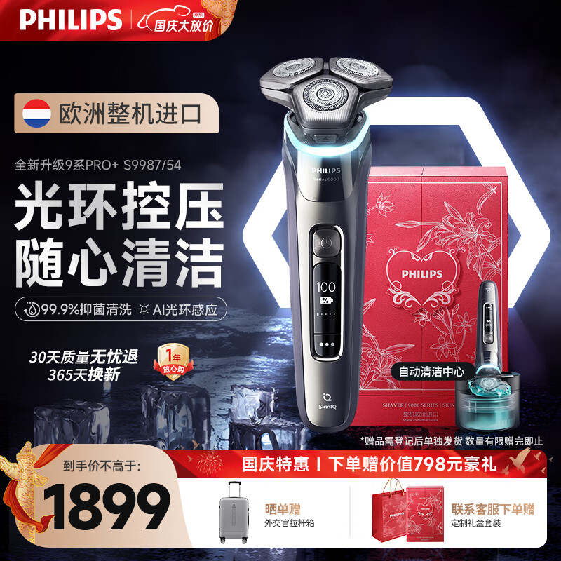 飞利浦(PHILIPS)电动剃须刀蜂巢9系Pro+ SkinIQ科技【整机荷兰进口】生日礼物送老公送长辈 S9936海外版 S9987价格:2099.00元!