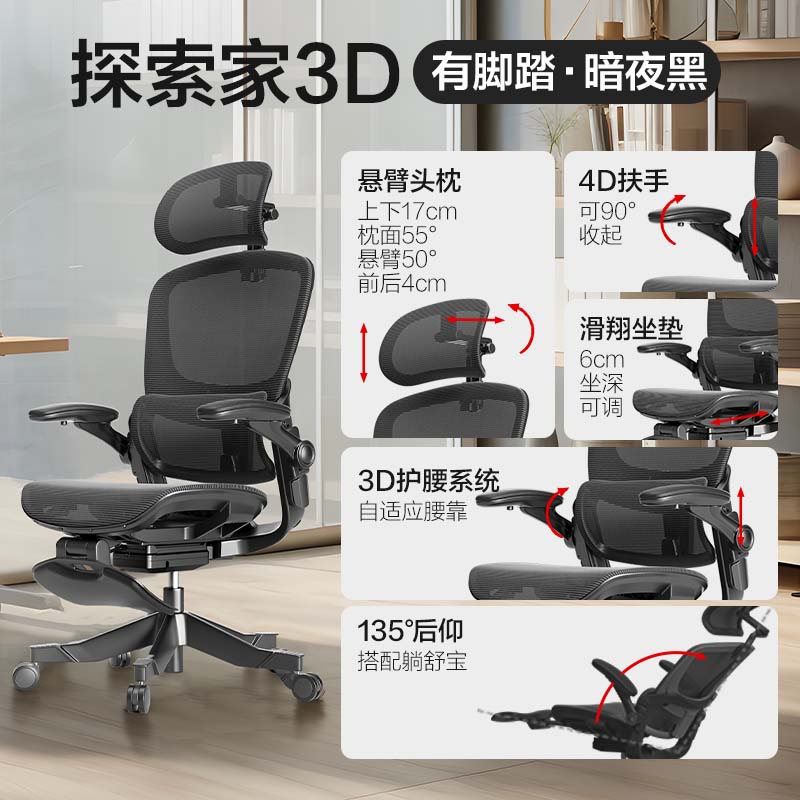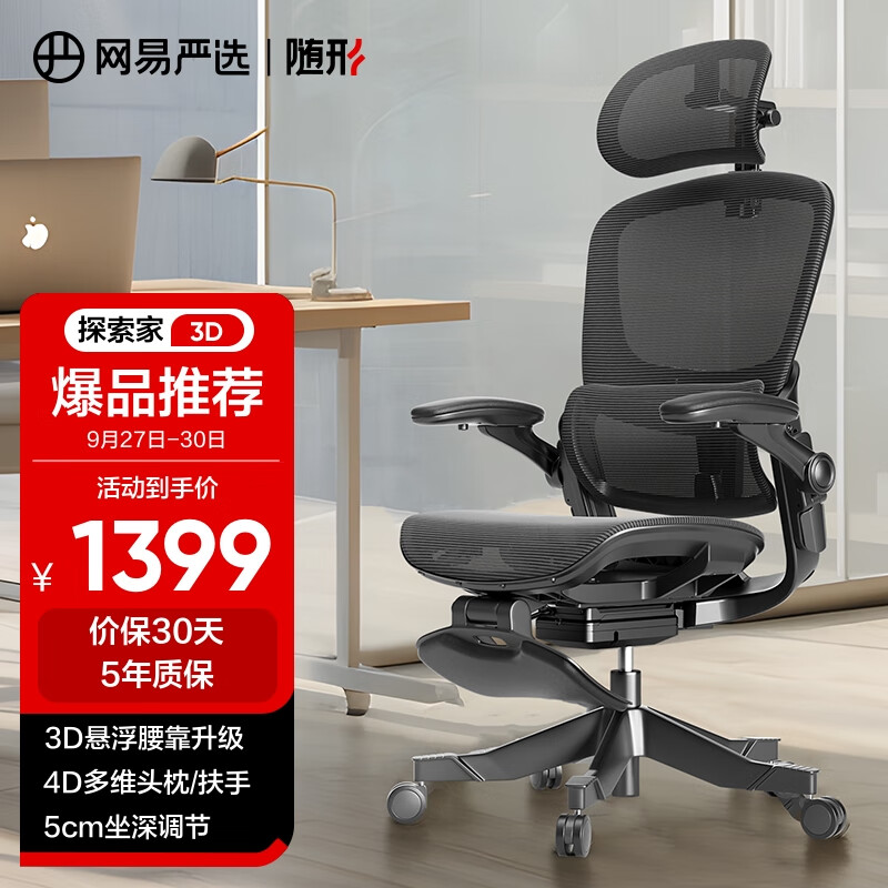 网易严选探索家经典款有搁脚 人体工学电脑椅办公电竞老板会议学习椅凳子价格:1899.00元!