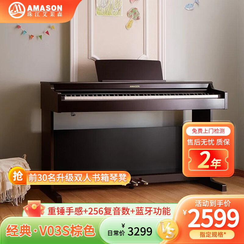 艾茉森(Amason)珠江钢琴 考级电钢琴88键重锤数码电子钢琴专业成人儿童V03S价格:3299.00元!