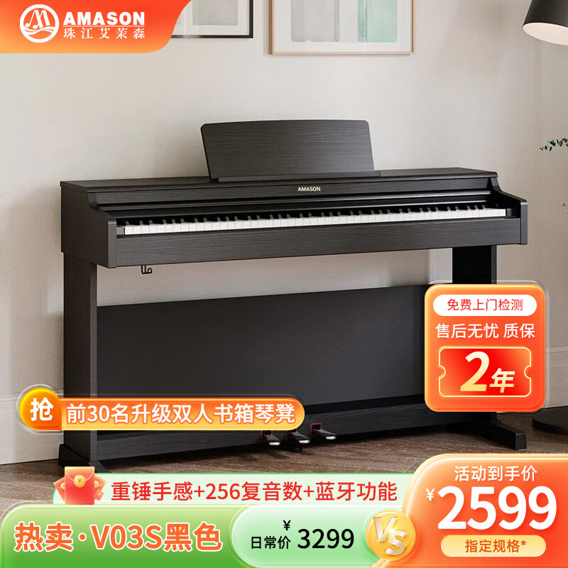 艾茉森(Amason)珠江钢琴 考级电钢琴88键重锤数码电子钢琴专业成人儿童V03S黑价格:3299.00元!