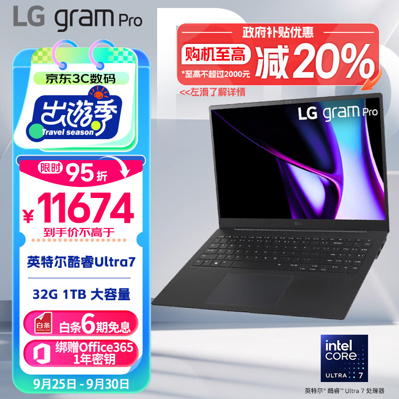 LGgram Pro 2024 evo Ultra7 16英寸AI轻薄本2.8K OLED屏长续航笔记本电脑(32G 1TB 黑)游戏AI PC价格:12299.00元!