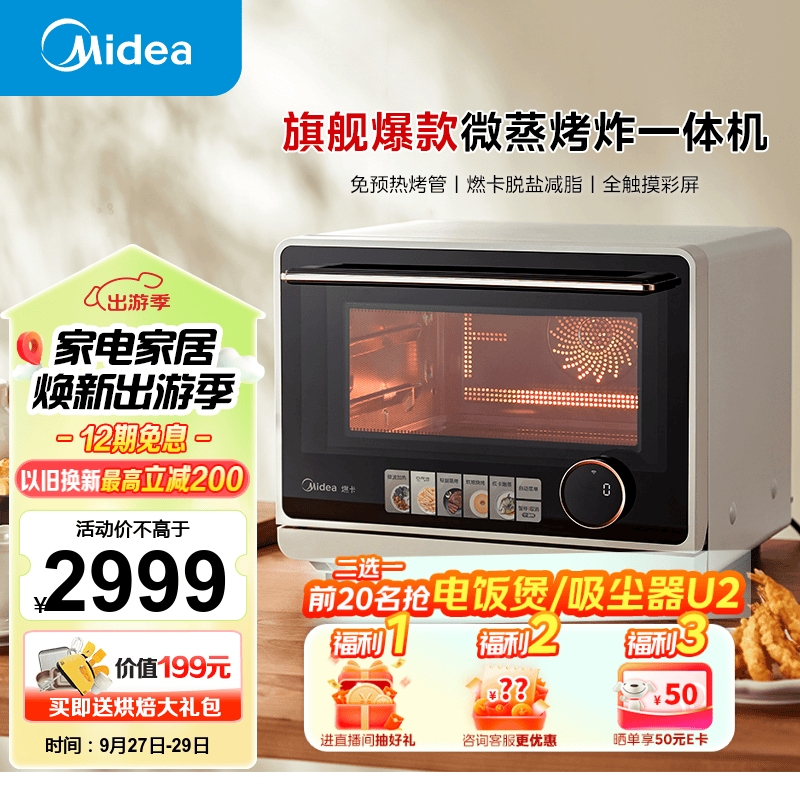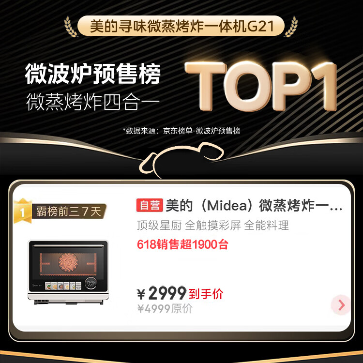 美的(Midea)寻味Pro系列 微蒸烤炸台式一体机 家用变频微波炉 空气炸蒸烤箱电烤箱 304不锈钢内胆 杏色(G21)价格:2999.00元!