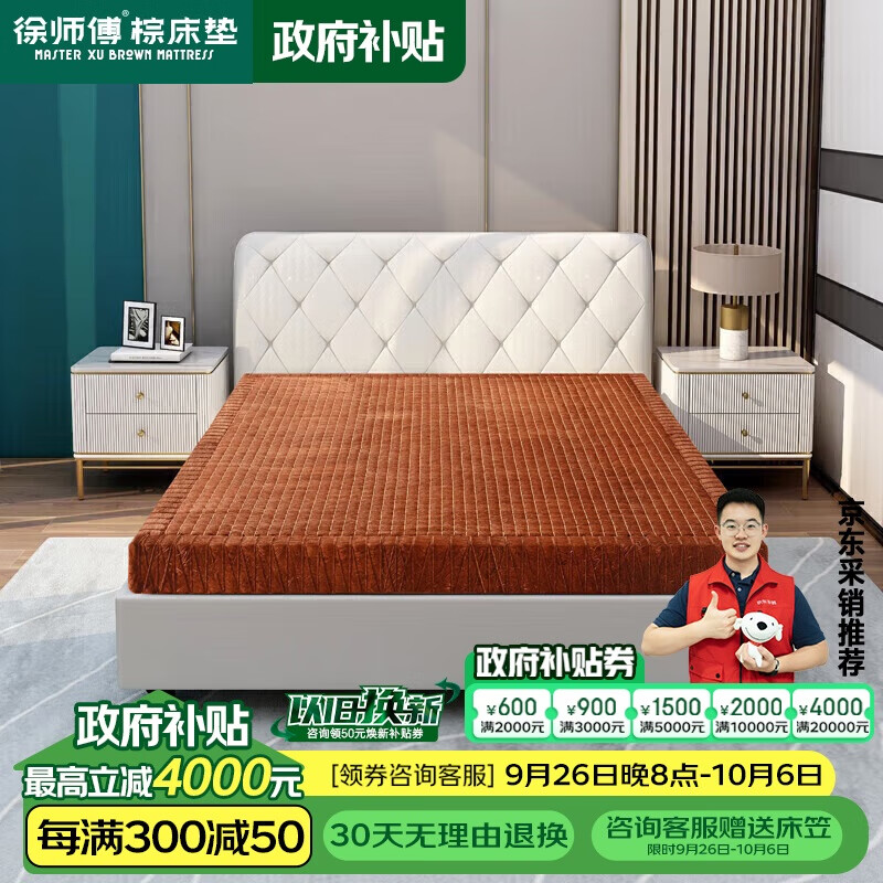 徐师傅全山棕床垫硬棕垫手工线缝单双人榻榻米床垫定制2*2.2米价格:5372.00元!