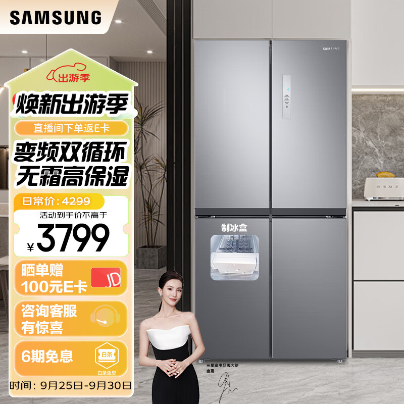 三星(SAMSUNG)488L四开门 制冰冰箱 风冷无霜 变频双循环 快速冷冻 以旧换新 月光银 RF48A4000M9/SC价格:3799.00元!