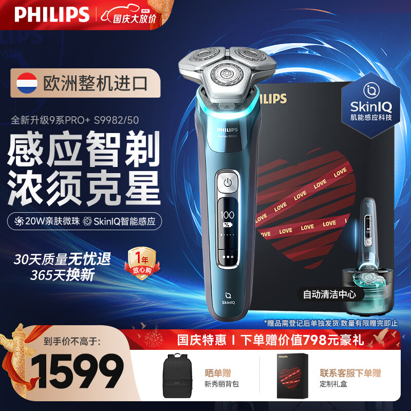 飞利浦(PHILIPS)男士电动剃须刀蜂巢9系Pro SkinIQ科技【整机荷兰进口】【送老公送长辈 生日礼物】S9982价格:1699.00元!