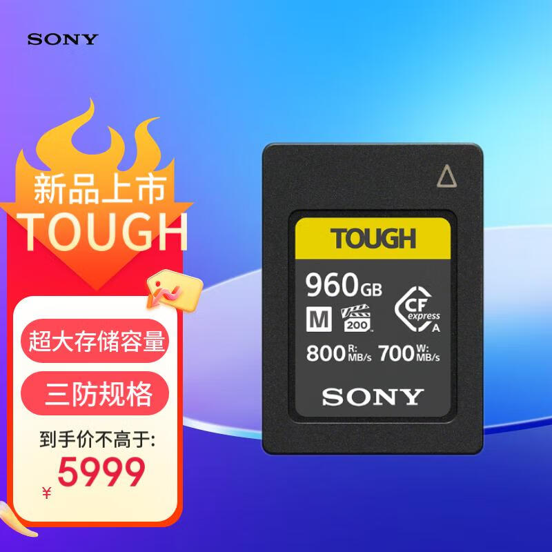 索尼(SONY)960GB CEA-M960T CFexpress Type A存储卡读速800MB/s 写速700MB/s CFe三防存储卡 支持VPG200价格:5999.00元!
