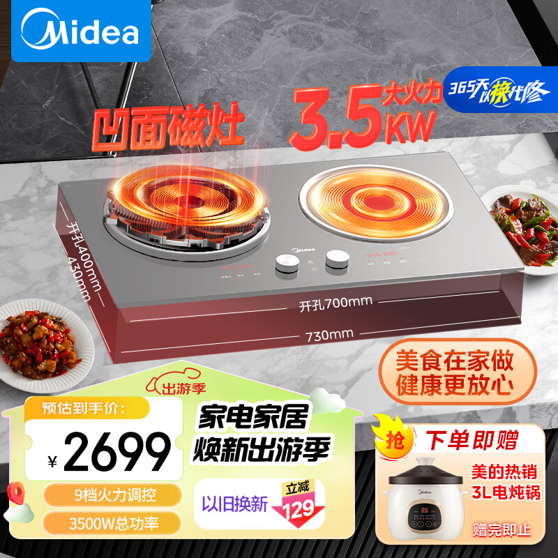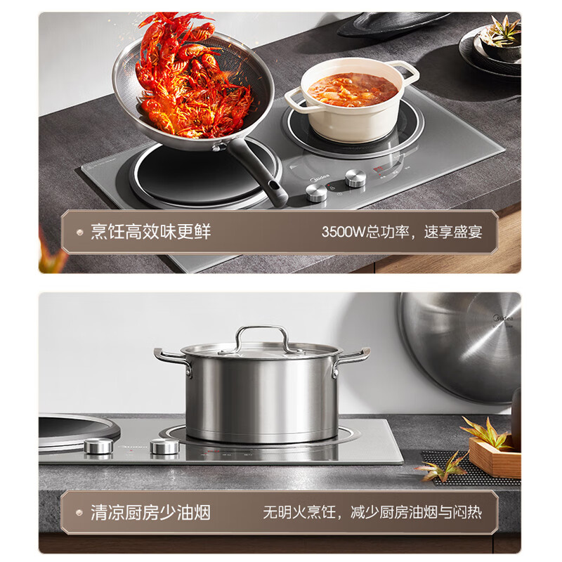 美的(Midea)电磁炉双灶 3500W家用大功率一平一凹嵌入式电陶炉不挑锅具 3H定时恒温匀火铂钻面板 MC-DZ35AT09P价格:2599.00元!