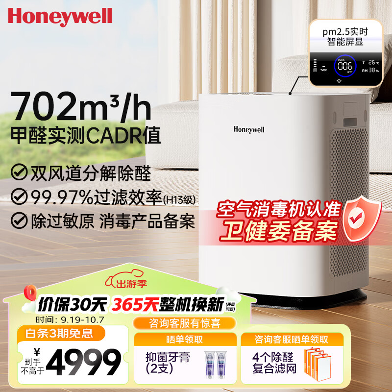 霍尼韦尔(Honeywell)空气净化器除甲醛细菌过敏原除tvoc 新房除醛过滤灰尘 卫健委备案消毒机KJ760F-P22W价格:4999.00元!