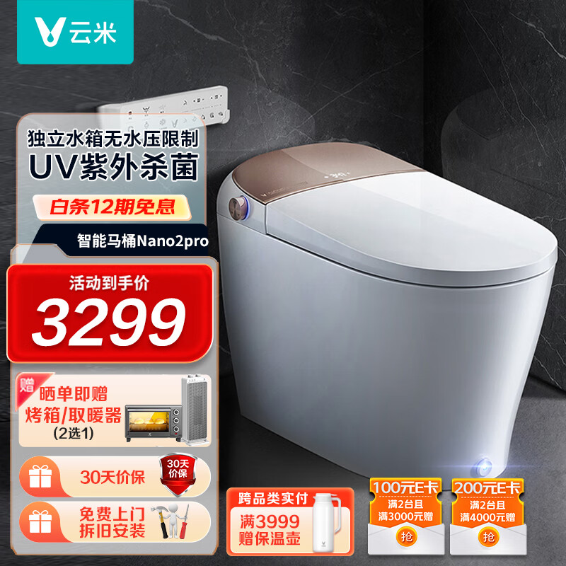 云米(VIOMI)智能马桶一体机全自动带水箱虹吸式智能坐便器Nano2Pro 400坑距价格:3299.00元!