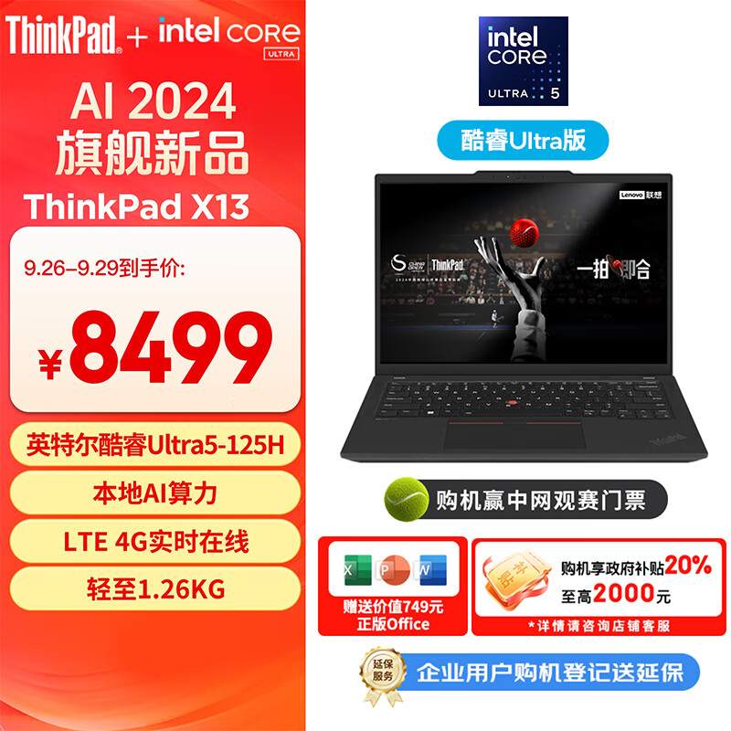 ThinkPad X13 2024 13.3英寸全互联商务办公联想笔记本电脑 酷睿Ultra5 125H 32G 512G AI PC轻薄本(3HCD)价格:8499.00元!