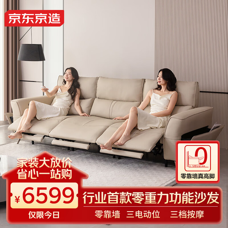 京东京造舒境真皮电动沙发 零靠墙三档按摩三电机客厅大户型 米白2.7m价格:7299.00元!