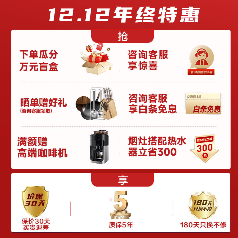 5、烟机颜值高,外观明亮大气,物流速度非常快,**沟通顺畅,安装效果也很好,先给五分好评,但是目前处于装修中,暂未使用,待使用后再来追评