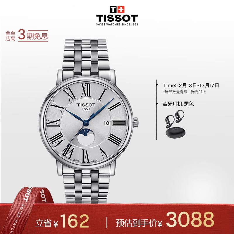天梭(TISSOT)瑞士手表 卡森臻我系列腕表 石英男表送男友T122.423.11.033.00价格:3250.00元!