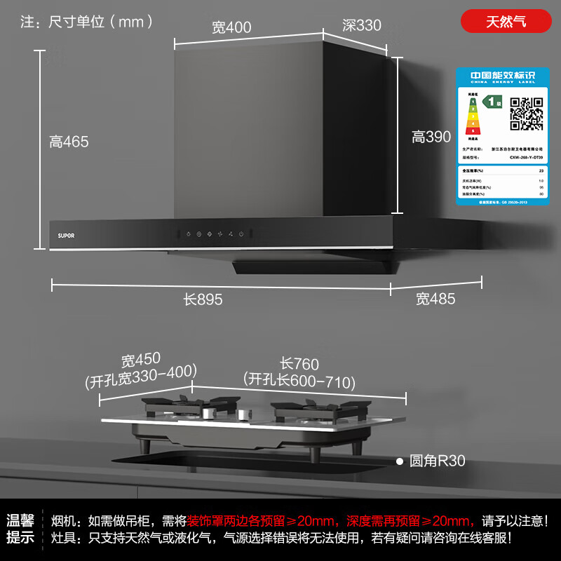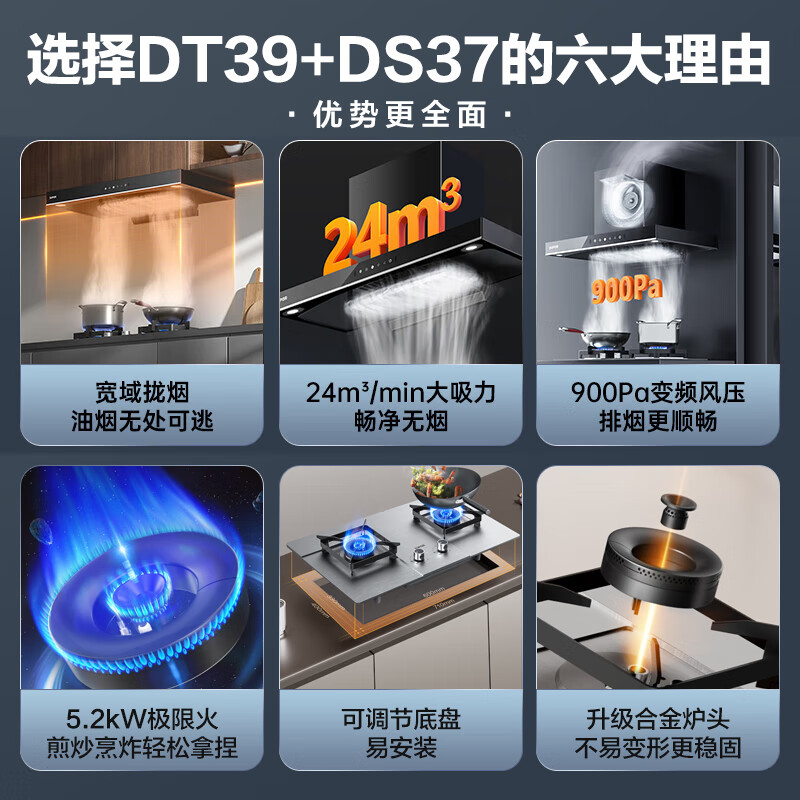 苏泊尔(SUPOR)抽油烟机燃气灶套装 欧式烟灶套装 24立方变频风压挥手智旋干洗吸油烟机DT39+DS37天然气价格:2098.00元!