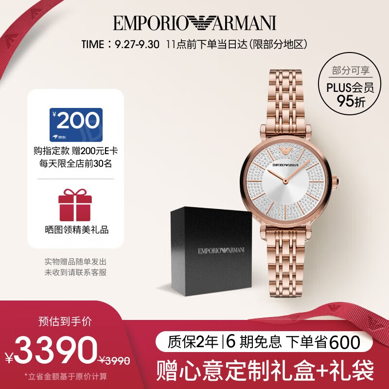 安普里奥·阿玛尼(Emporio Armani)手表女士满天星镶钻表盘玫瑰金钢带女表生日礼物送女友AR11446价格:3750.00元!