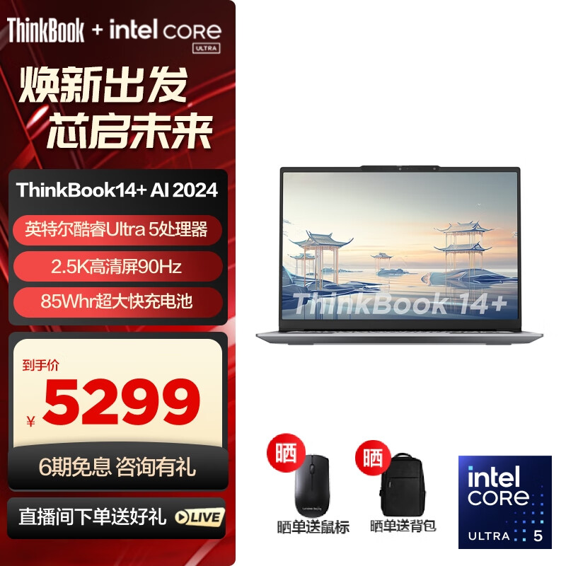 ThinkPad联想ThinkBook 14+ 2024 AI全能本 英特尔酷睿Ultra标压处理器14.5英寸笔记本电脑学生办公轻薄本 Ultra5 16G 512G 2.5K90Hz价格:5499.00元!